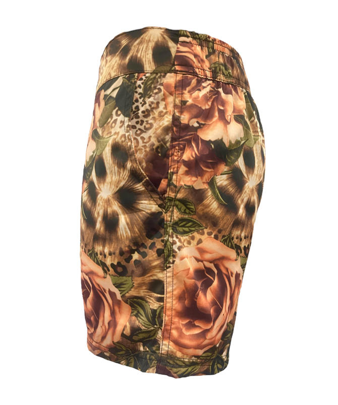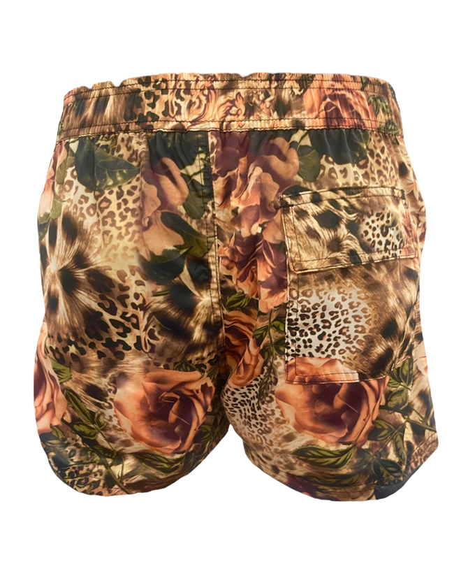 The design features two side pockets and a back patch pocket with a flap closure. Internal mesh briefs, a fixed waistband in the front, and elastic on the back for a perfect look inside or outside the water.