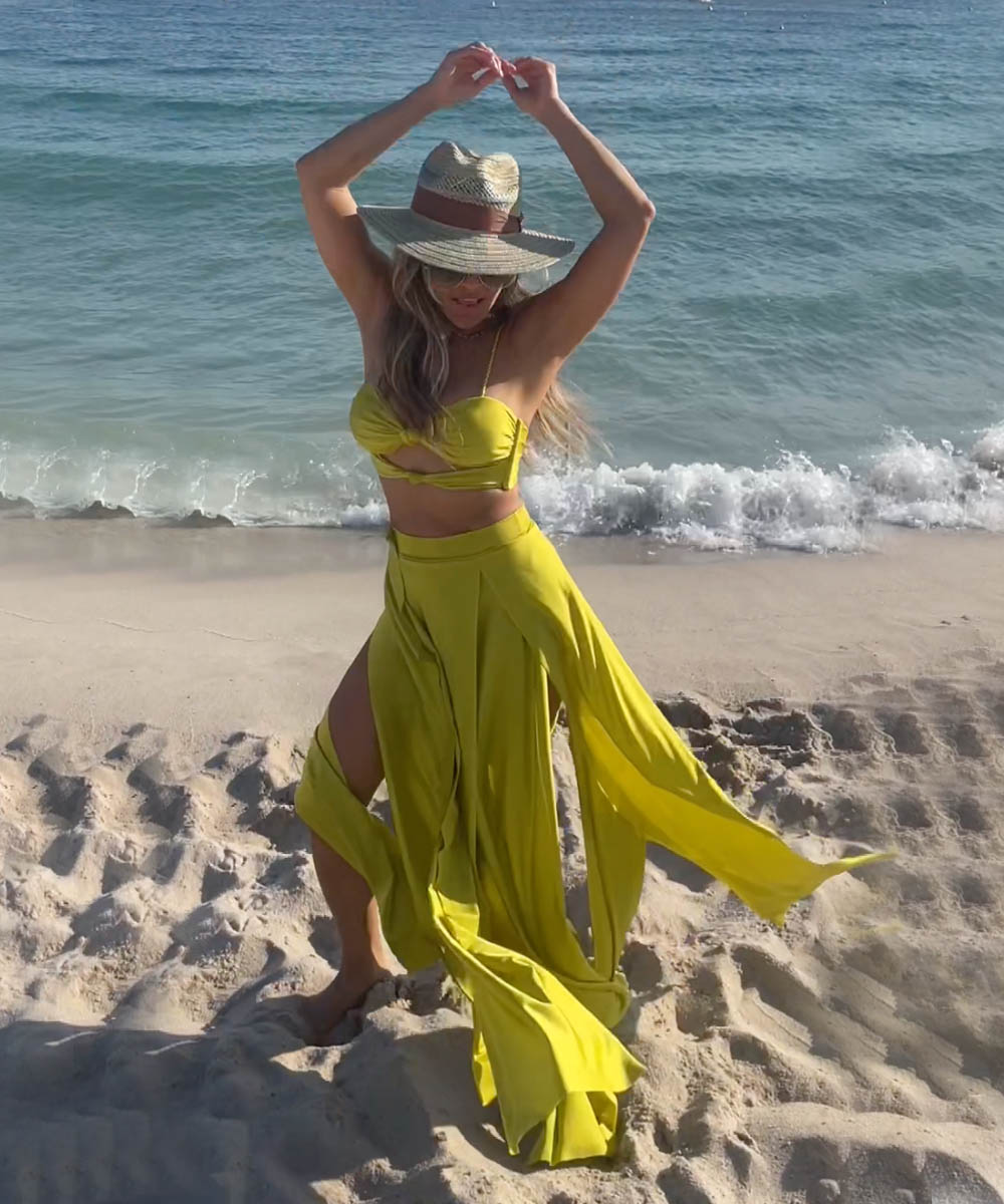 The Split Maxi Skirt: This jewel is part of our brand’s DNA, featuring high waist slits and a dramatic A-line drop. The versatility of the blocks allows you to tie it in multiple ways and even turn it into a dress!