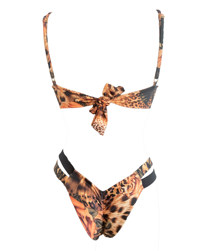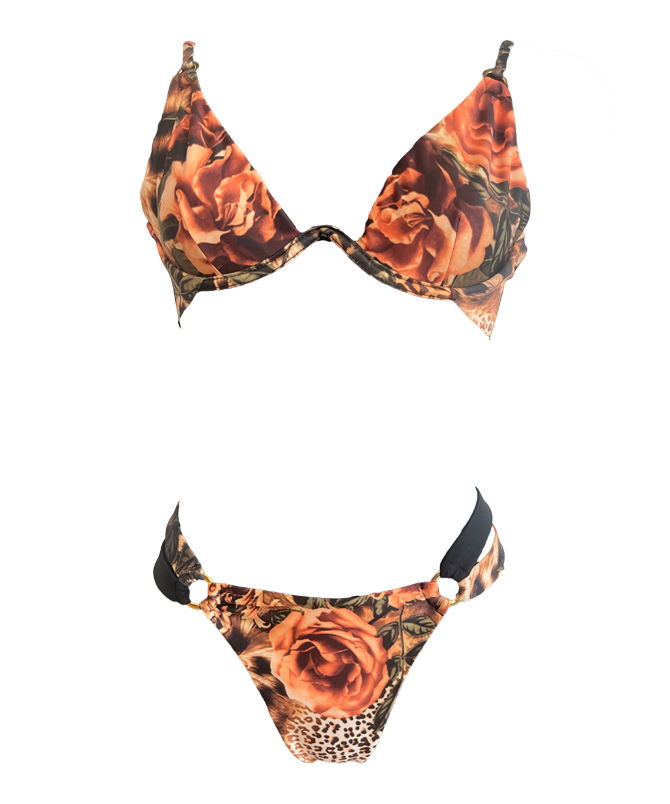 The wild fierce Muse bikini is the perfect choice for a long day at the beach. The top is underwire for more support, along with small details on the straps. The bikini bottom is designed in a ruched Brazilian style, complemented by ring details on the sides
